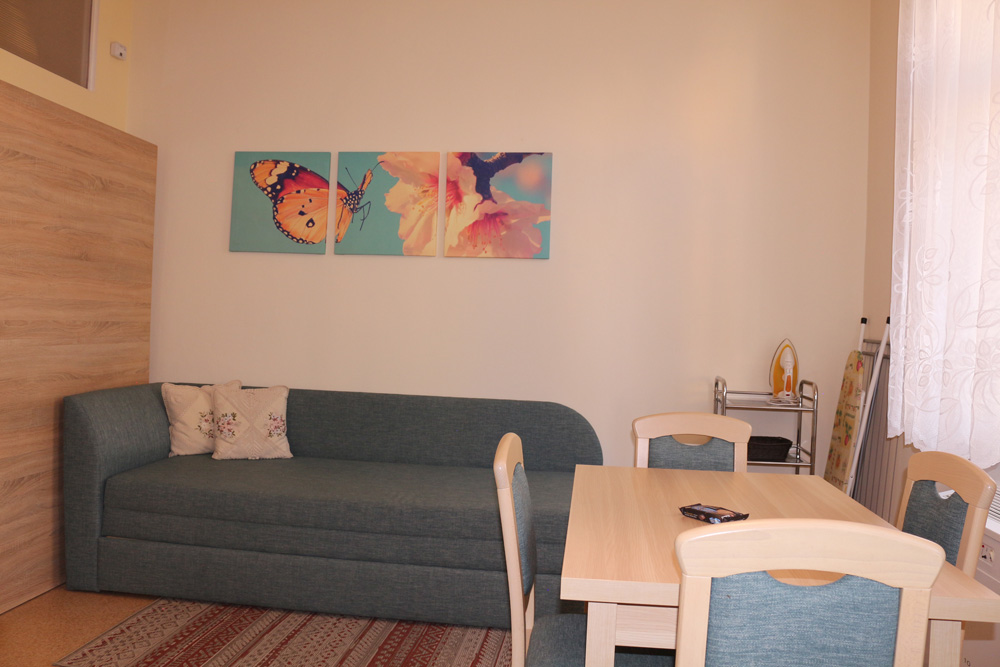 The prices for the apartment accommodation include bed linen and towels. Towels are changed weekly, bed linen after two weeks. Parking is provided on the street next to the house for free or in the garage for a fee. The apartments have free Wi-Fi connection